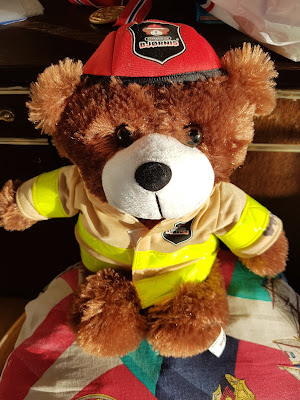 Brannmennene stilte med første gave til ungene, en bamse til hver!! Det ble en god opplevelse for ungene. Trøst i senga om natta.